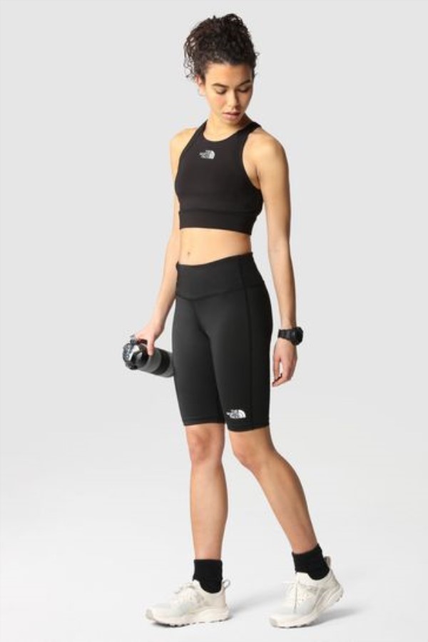 חזיית פאנל שכבה כפולה הכוללת רצועת מותן אלסטית פנימית עם חור בצורת גב, גרפיקה גדולה של לוגו Tnf בחזית ולוגו Tnf מנוגד במרכז האחורי.