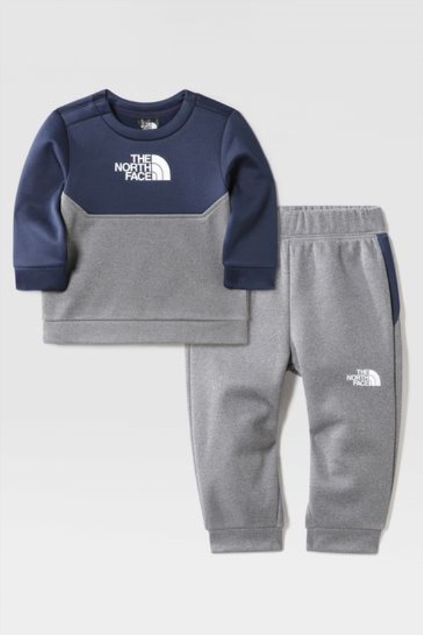סט המורכב על ידי צוואר צוואר עם סגירה בלתי נראית בצד / שולי בד עצמי וחפתים / לוגו העברת חום Tnf מלפנים ומאחור / ומכנסיים עם חגורת בד עצמי; חפתים מבד עצמי / לוגו Tnf להעברת חום מלפנים ומאחור