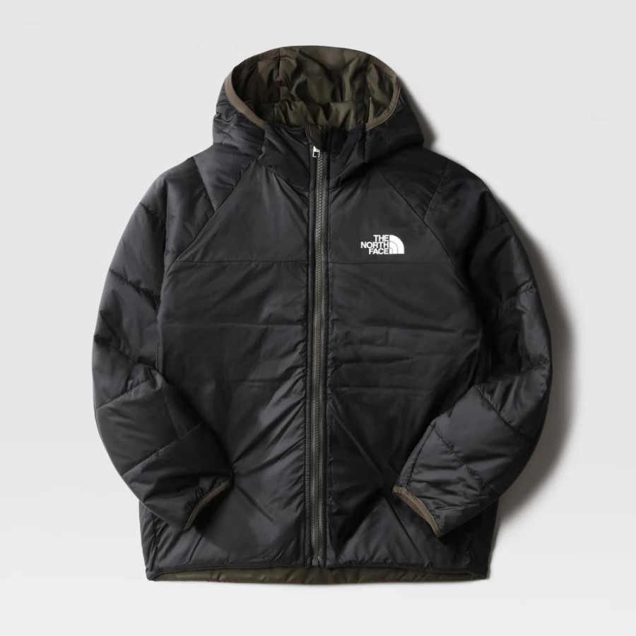 ה-North Face Boys מעיל פריטו הפיך חדש בצבע חום ירוק